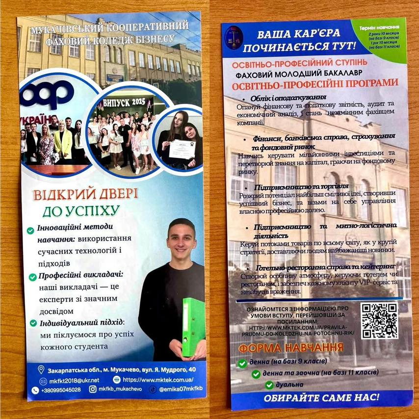 Профорієнтація, як стратегічний крок, поєднує таланти з вимогами сучасного ринку. Це вибір спеціальності та пошук середовища для самореалізації майбутніх вступників. Важливу роль у цьому процесі відіграють викладачі Мукачівського кооперативного фахового коледжу бізнесу, які розпочали другу хвилю виїзних зустрічей у школах міста й різних районів області. Спілкуючись із учнями безпосередньо, викладачі допомагають випускникам розібратися в особливостях професій та перевагах навчання в коледжі. Такий живий діалог дозволяє молоді отримати відповіді на актуальні питання «з перших вуст» і впевнено обрати шлях у сфері обслуговування та бізнесу.