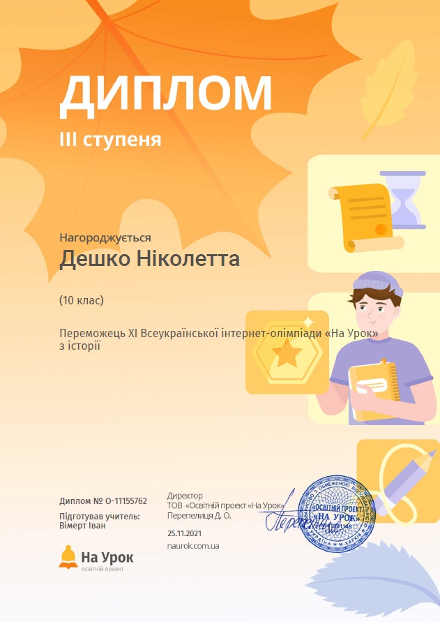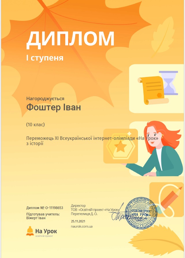 У листопаді 2021 р. відбулася XI Всеукраїнська олімпіада з історії на інтернет-платформі «На Урок», у якій взяли участь 20 студентів МКФКБ. Усі учасники олімпіади отримали задоволення від участі у цьому заході і перевірили свої знання перед складанням ЗНО з «Історії України», а дев’ять переможців були нагороджені дипломами різного ступеня.